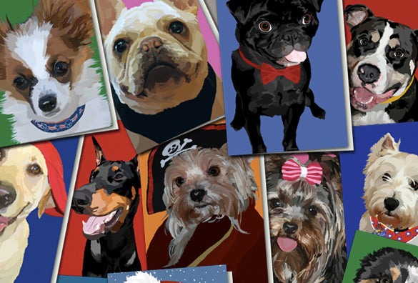 We offer hand-painted custom pet portraits on any size canvas, wine glasses, beer mugs, ornaments, and tea and coffee cups.